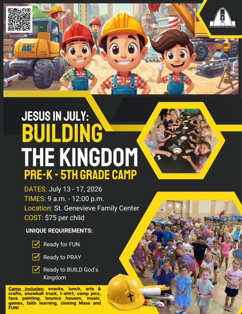 Give your child the opportunity to grow and thrive by having these life-giving characteristics instilled and developed in him or her through active participation in the St. Genevieve Youth Formation Program. We can’t wait to walk with your family in this faith journey!